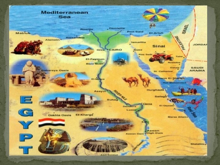 Dar reke Nil � Nijedna druga civilizacija se u to vreme nije mogla takmičiti sa drevnim Egiptom - moćnom državom poznatom po izuzetnom bogatstvu. Oanovni razlog je bila velika geografska prednost, a toje da su Egipćani imali veoma plodno zemljište u blizini reke Nil. � Reka Nil je hiljadama godina bila centar njihovog života i razvoja. � Za Egipat se i danas kaže da je dar reke Nil jer su dve najvažnije oblasti Egipta: � velika delta Nila � dolina Nila