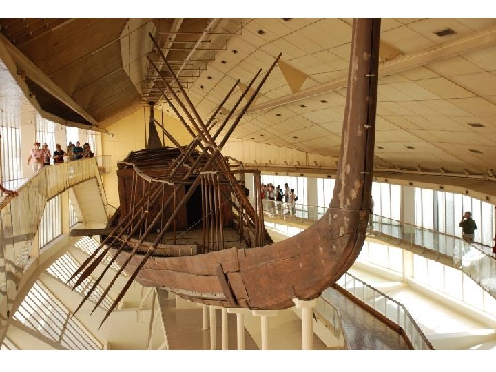 Las pirámides estaban rodeadas de edificaciones menores como templos, recintos sagrados, etc. Junto a la pirámide Keops apareció, enterrado y desmontado, el barco solar que debía llevar al Faraón al más allá. National Geographic pagó la excavación y hoy se visita el barco, remontado íntegramente