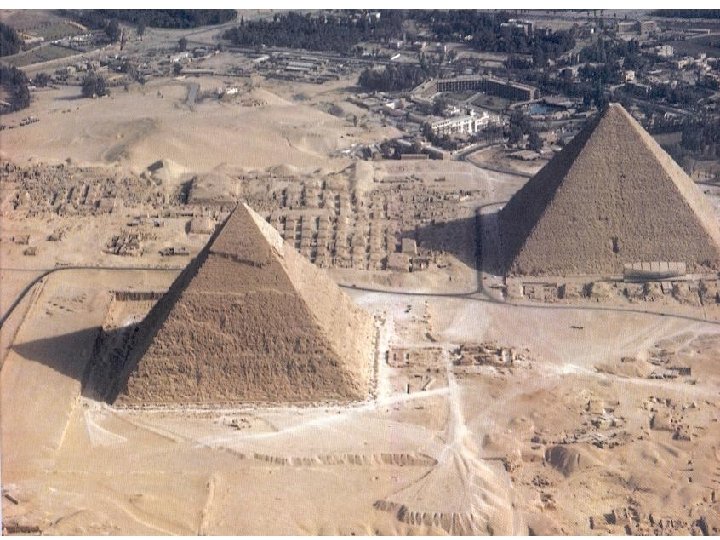 Las pirámides más famosas están en Gizeh, cerca de El Cairo. Son las de Keops, Kefrén y Mikerinos.