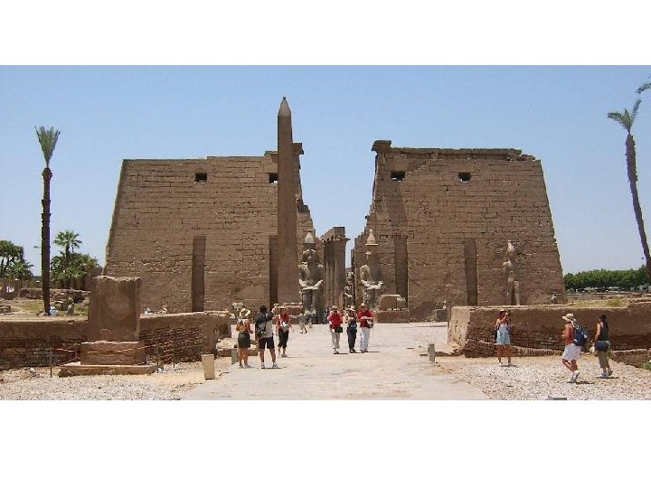 El templo de Luxor El templo estaba dedicado a Amón-Ra, el Sol, divinidad suprema en Egipto. Cerca de Karnak, el otro gran templo y alineado con él. Fue construido durante el Imperio Medio. Comenzado por Amenhotep II (1390 -1353 a. C. ) Otros faraones añaden y cambian. Es determinante es la ampliación de Ramsés II.