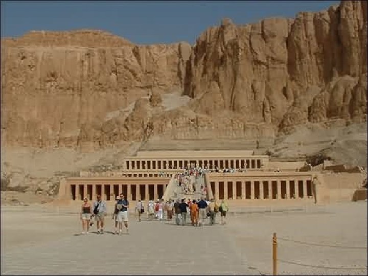 Templos � Eran dedicados a los Dioses � Había una avenida con esfinges o carneros � Se entraba a un patio con altas columnas a los lados. La población egipcia solo entraba hasta este lugar. � Había otra sala de columnas pero cubierta. � En el fondo se encontraba el Santuario donde se adoraba la imagen del Dios. Allí solo accedían el faraón y los sacerdotes.