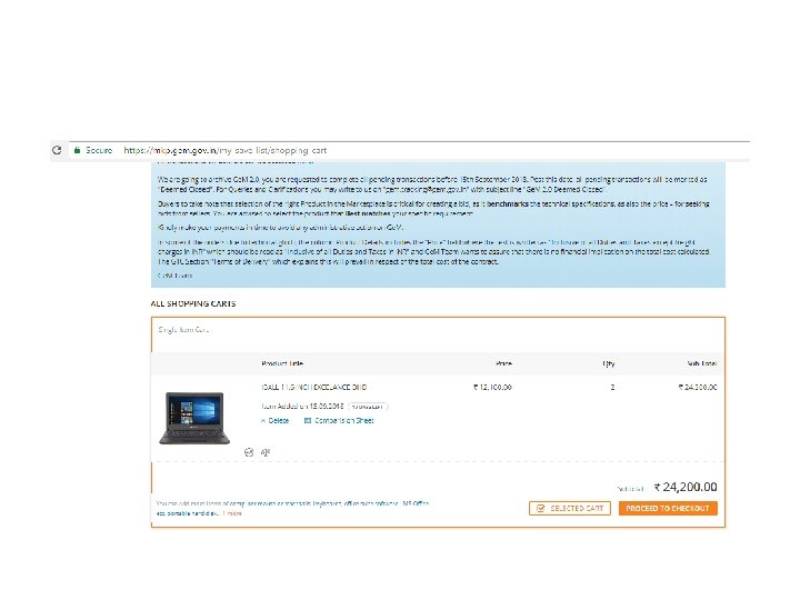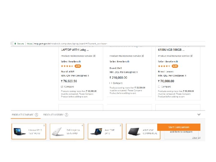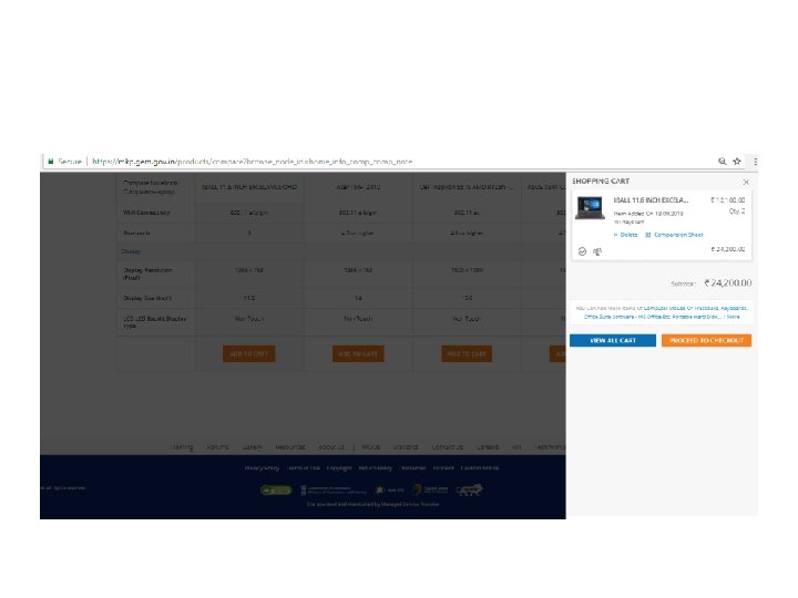 • Purchase a Product • There are four ways to purchase a product from Ge. M portal and these are Ø buy (without comparison) Ø buy (with comparison) Ø bidding purchase Ø and reverse auction purchase. • In direct buy (without comparison) just select the single product from the list and click buy button or add to cart if purchase more item.