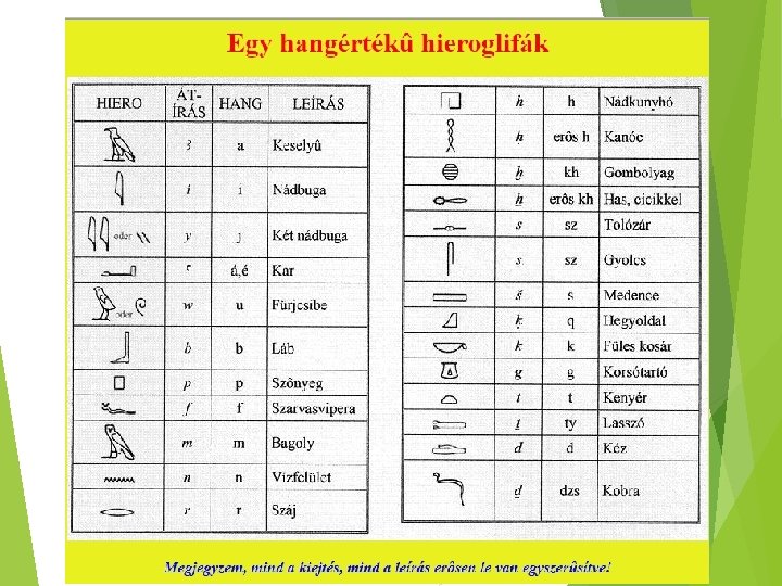 Hieroglifa átirata Próbáld meg leírni a neved a hieroglifák segítségével, melyeket a következő dián is megtalálsz.