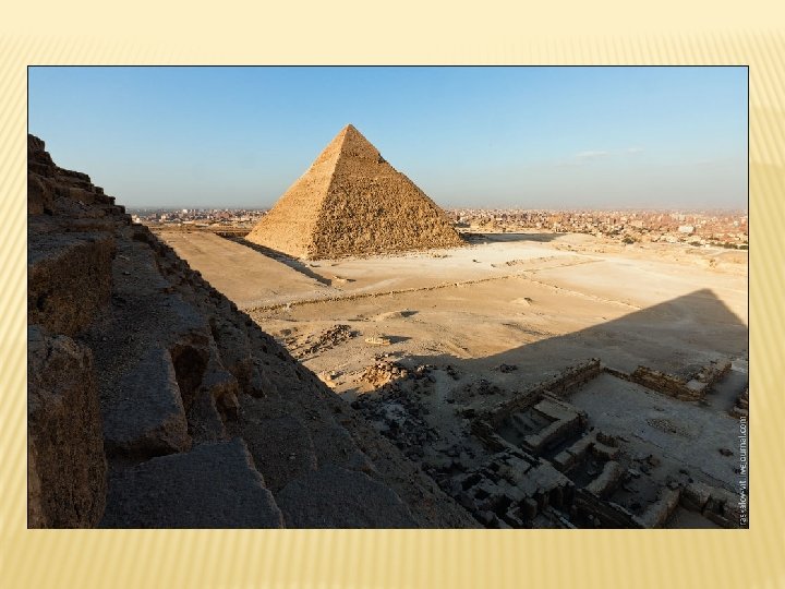 WHAT’S WITH THE SHAPE? � The pyramid shape could represent the mound that Amon-Re rose up from in the creation myth � It might also represent the descending rays of the sun