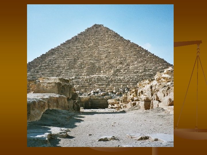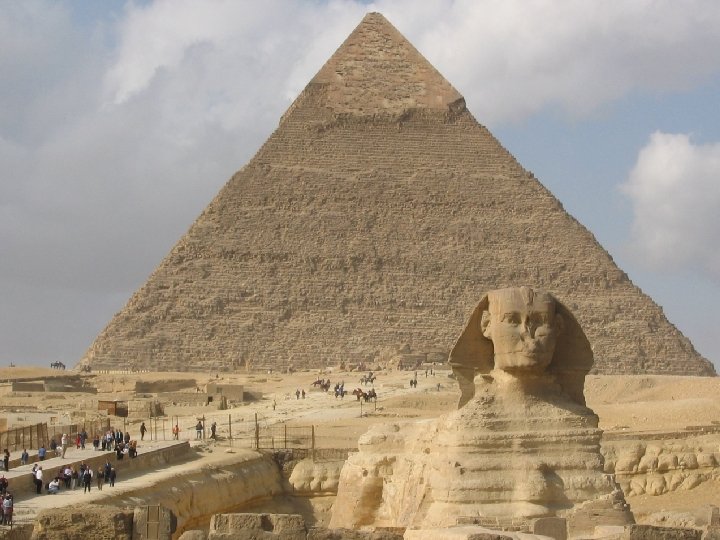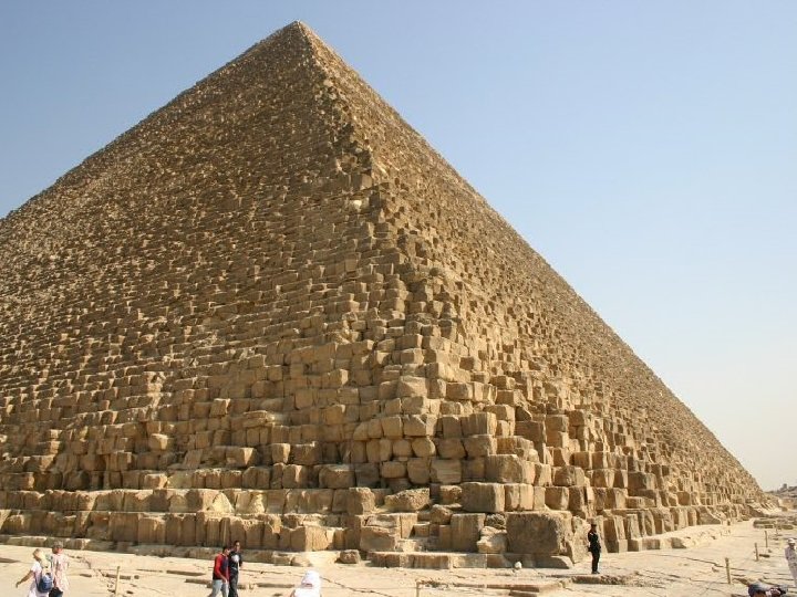 Chufuofa pyramida… n Jedná se o nejhmotnější stavbu na světě, kdy původní objem celé stavby měřil asi 2 520 000 metru krychových. Na celou stavbu bylo použito asi 2. 3 milionů kusů kamenných oblouků( jeden má cca 2. 5 tuny), které na zemi spočívají tíhou téměř 5 000 tun. Podle záznamů historika Hérodota pracovalo na stavbě v tříměsíčních intervalech okolo sta tisíců otroků asi 20 let. Dnes se odbornící shodují , že na práci pracovalo něco přes 30 tisíc dělníků.