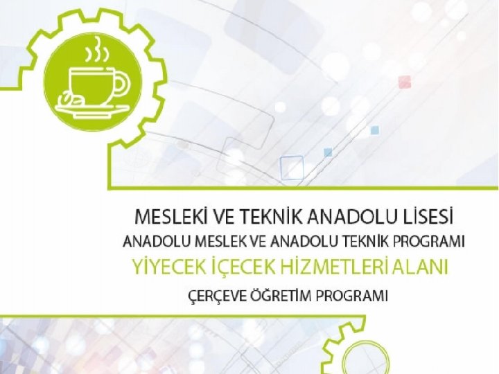 YİYECEK İÇECEK HİZMETLERİ ALANI ÖĞRETİM PROGRAMININ AMAÇLARI Yiyecek ve içecek hizmetleri alanı otel, restoran, kafeterya, pastane, toplu beslenme kurumları, vb. yerlerde hijyen ve sanitasyon kurallarına uygun olarak yiyecek ve içeceklerin servise hazır hâle getirilip müşteriye sunulduğu hizmet alanıdır. Turizm sektöründeki gelişmeler, toplumdaki sosyo-kültürel ve ekonomik değişimler, gıda üretimtüketim zincirine teknolojinin dâhil olması; insanların birçoğunun ev dışında hazırlanmış yiyeceklerle beslenmelerine ve yiyecek içecek hizmetleri alanının hızla gelişmesini sağlamıştır. Dünyada ve ülkemizde hızlı bir gelişim ve değişim gösteren yiyecek içecek hizmetleri sektörü önemli bir istihdam alanı hâline gelmiştir. Bu alanda; rekabet koşullarına ayak uydurabilmek için sektörün istediği yeterlilikleri kazanmış, dünya standartlarında hizmet verecek kaliteli insan gücüne ihtiyaç duyulmaktadır. Yiyecek İçecek Hizmetleri Alanı Çerçeve Öğretim Programı’nda; 1. Yiyecek İçecek Hizmetleri dalı yer almaktadır