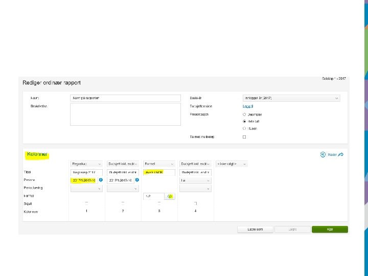 • Legger man ikke inn f. eks. ansvar i utvalget vil rapporten vise alle fakturaer i fylkeskommunen totalt sett. • Vi kan begrense ved å legge inn fra og med attestering til og med anvisning.