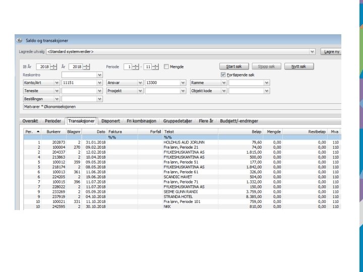 Spørring i Økonomisaldo og transaksjoner