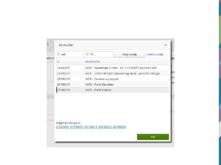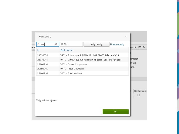 • Legger man ikke inn f. eks. ansvar i utvalget vil rapporten vise alle fakturaer i fylkeskommunen totalt sett. • Vi kan begrense ved å legge inn fra og med attestering til og med anvisning.