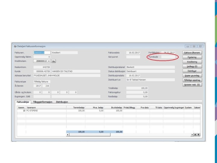 • Møre og Romsdal fylkeskommune kan ikke betale ut fakturaer stilet til privatpersoner eller til andre firma • I slike tilfeller må ansatt legge ut for fakturaen og søke om refusjon • I tilfelle vi har mottatt faktura stilet til feil firma, ta kontakt med leverandør og be om ny faktura