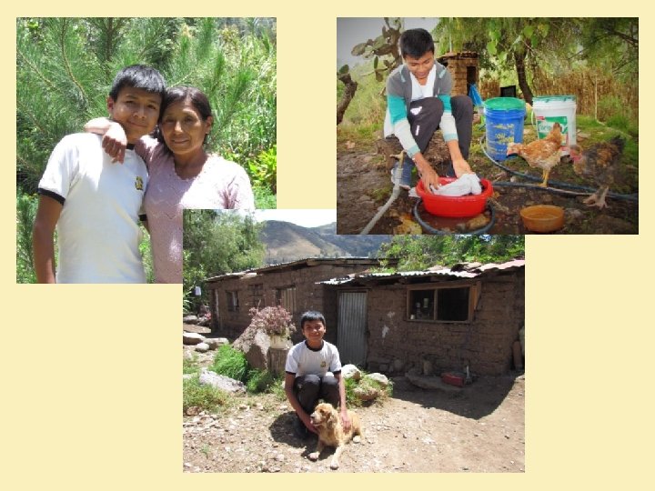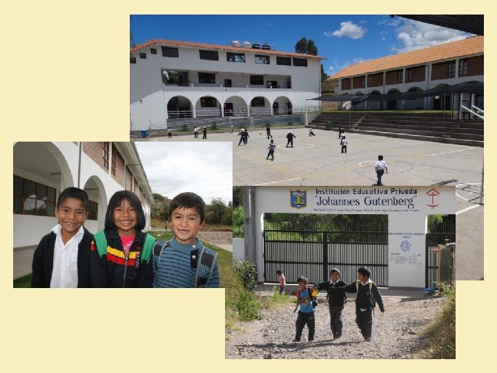 Folien-Nr. Text 8 Diesen Kindern und ihren Familien will das Kinderwerk Lima helfen. Dafür wurde 2009 eine Schule gebaut. 9 Die Kinder werden liebevoll betreut, bekommen eine gute Ausbildung und werden gezielt gefördert. 10 In der Schulküche erhalten die Kinder eine ausgewogene Mahlzeit. Auch ärztliche Betreuung und Elternkurse gehören zum Konzept der Johannes-Gutenberg-Schule. 11 Außerdem ist die geistliche Arbeit unter den Schülern und ihren Familien sehr wichtig. Die Kinder und Eltern sollen die Liebe Gottes erfahren und Orientierung für ihr Leben bekommen. 12 Dafür werden die Eltern gezielt unterstützt. Für sie werden Vorträge und Seminare angeboten: «Wie erziehe ich meine Kinder ohne Gewalt? » oder «Wie versöhne ich mich wieder nach einem Streit? » . 13 Miguel war einer der ersten Schüler, als die Schule 2009 begann. Heute besucht er die 10. Klasse. 14 Er lebt zusammen mit seiner Mutter in dieser Hütte. Sein Vater hat die Familie schon vor vielen Jahren verlassen. Er besitzt nur ein Schul-T-shirt welches er jeden zweiten Tag waschen muss. 15 Über die Johannes-Gutenberg-Schule sagt er: „Mir gefällt es sehr gut hier. Alles ist schön und sauber. Das Wichtigste ist aber: Die Lehrer interessieren sich für mich und helfen mir. Die Schule ist mein zweites Zuhause. “