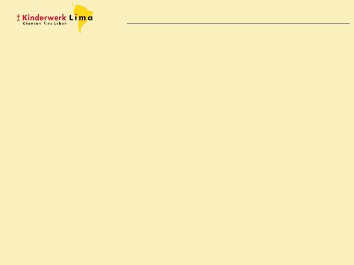 Folien-Nr. Text 1 Titelfolie 2 Huanta ist eine peruanische Provinzhauptstadt mit etwa 30. 000 Einwohnern. Sie liegt elf Autostunden von der Hauptstadt Lima entfernt. Das saubere und schöne Städtchen liegt auf 2. 600 m Höhe und wird auch „Smaragd der Anden“ genannt. Doch der Name täuscht. 3 Vor 30 Jahren versetzte die Terrororganisation «Leuchtender Pfad» gerade die Region um Huanta in Angst und Schrecken. Die Menschen wurden sehr schlecht behandelt, geschlagen und es kamen viele ums Leben. Noch heute sind die Bewohner Huantas traumatisiert vom Erlebten. Viele haben Angstzustände und Depressionen und flüchten sich in den Alkohol, um zu vergessen. Mit sich selbst und den eigenen Problemen beschäftigt, haben die Eltern oft keine Zeit für ihre Kinder. 4 Etwa die Hälfte der Einwohner Huantas haben keine regelmässige Arbeit. Männer suchen sich Gelegenheitsjobs auf dem Bau, Frauen versuchen mit Handarbeiten etwas dazuzuverdienen. Trotzdem reicht es nicht einmal für das Nötigste. 5 Deshalb fahren viele Erwachsene für einige Wochen in die Urwaldgegend. Bei den dortigen Erntearbeiten verdienen sie besser und können ihre Familien wieder für einige Wochen über Wasser halten. Die Kinder lassen sie bei den Grosseltern oder bei den älteren Geschwistern in Huanta. 6 Viele Kinder von Huanta trifft daher ein schweres Los. Die Eltern sprechen kaum über ihre belastende Vergangenheit und über ihre Sorgen. Um über die Runden zu kommen, arbeiten Mutter und Vater hart und sind darüber hinaus kaum zu Hause. 7 Die Folge sind hungernde Kinder – ungepflegt und alleingelassen. Sie sehnen sich nach jemandem, der sich für sie interessiert, sie liebt und sich um sie kümmert.