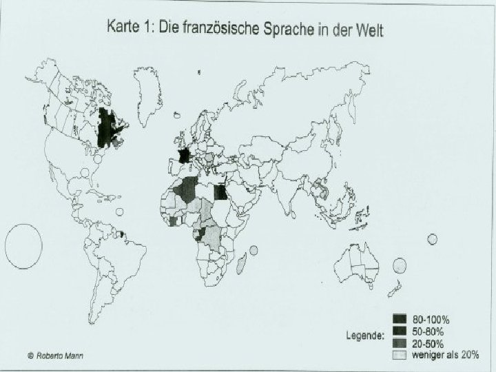 Romanische Sprachen in Europa Sprecherzahlen • • • Französisch Italienisch Spanisch Rumänisch Portugiesisch Katalanisch Okzitanisch Galizisch Sardisch 58, 1 Mio. 55, 4 Mio. 38, 6 Mio. 23, 7 Mio. 10, 1 Mio. 7, 3 Mio. 2, 7 Mio. 2, 4 Mio. 1, 4 Mio. • • • Alpenromanisch Korsisch Aromunisch 0, 6 Mio. 0, 2 Mio. nach: Haarmann, H. Die Sprachenwelt Europas. Frankfurt/New York 1993