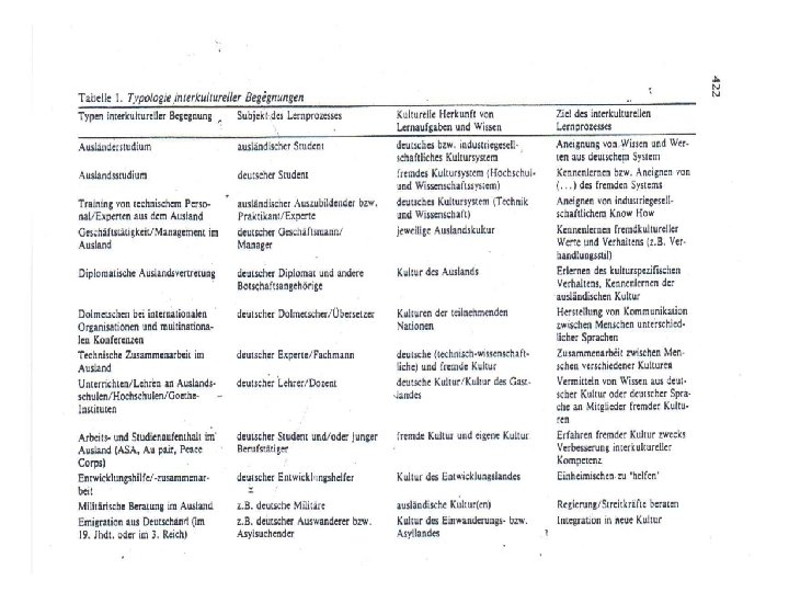 Typologie interkultureller Begegnungen Sandhaas, Bernd: „Interkulturelles Lernen - Zur Grundlegung eines didaktischen Prinzips interkultureller Begegnungen“, in: Internationale Zeitschrift für Erziehungswissenschaft (1988), Heft 34, S. 415 -438, Unesco Institute for Education: Hamburg.