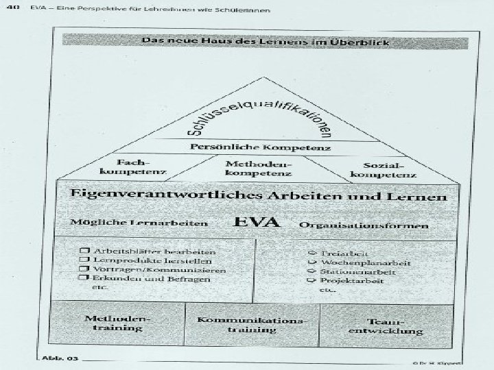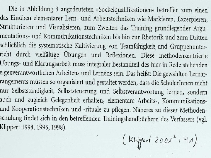 Curriculum • Der Begriff stammt aus dem Lateinischen und bedeutet Verlauf. Das Curriculum bezeichnet den Lehrplan. Es ist nach den Lehrzielen und dem Ablauf des Lehr- bzw. Lernprozesses ausgerichtet. Er enthält die Rahmenbedingungen (Inhalte, Lernziele und organisatorische Strukturen) des Lernvorgangs. • (Judith Rudolf)