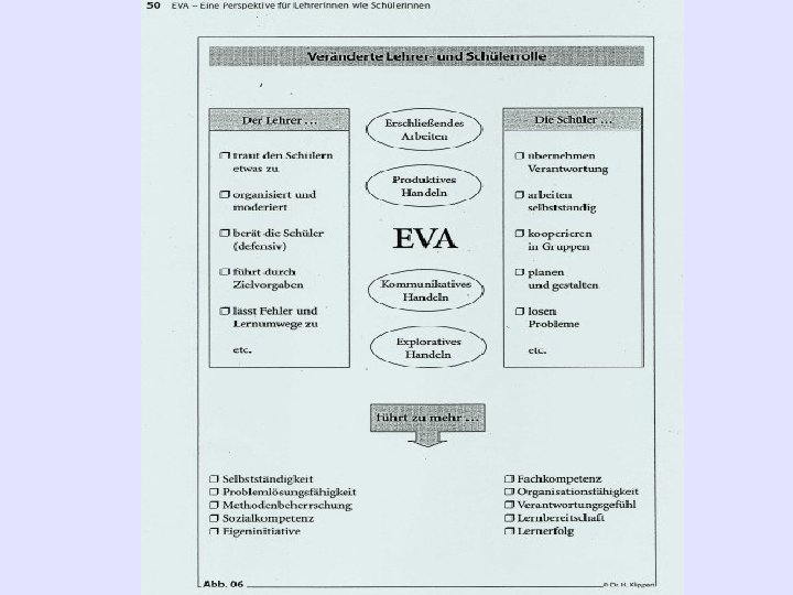Evaluation • Evaluation (Evaluierung) bedeutet allgemein die Beschreibung, Analyse und Bewertung von Prozessen und Organisationseinheiten, insbesondere im Bildungsbereich, in den Bereichen Gesundheit und Entwicklungshilfe, der Verwaltung oder Wirtschaft. Evaluation kann sich sowohl auf den Kontext (Voraussetzungen, Rahmenbedingungen), die Struktur, den Prozess als auch das Ergebnis (Produkt) beziehen. • (Kathrin Schäfer)