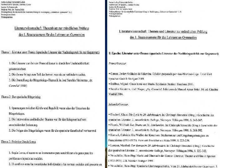 ausgewählte Klausurthemen • Gibt es überhaupt den autonomen Lerner? Wenn ja, dann geben Sie eine Definition und erläutern Sie, durch welche Lernstrategien autonomes Lernen gefördert werden kann! • Inwiefern stellt die Mehrsprachigkeitsdidaktik ein Novum dar? Beschreiben Sie an konkreten Beispielen typische Aufgabenformate dieses fremdsprachendidaktischen Ansatzes! • Definieren Sie den Begriff des E-Learning und beschreiben Sie mindestens zwei Beispiele praktischer Anwendung im Spanisch. Unterricht! Hinterfragen Sie kritisch das Konzept des E-Learning!