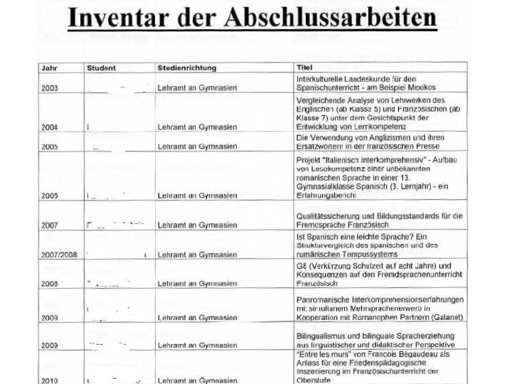 wichtige Themen: • • Kreativität Curricula Kompetenzorientierung Literaturdidaktik Mediendidaktik Methodik der Fremdsprachenvermittlung mentale Sprachverarbeitung Formen von Intelligenz, Hochbegabung