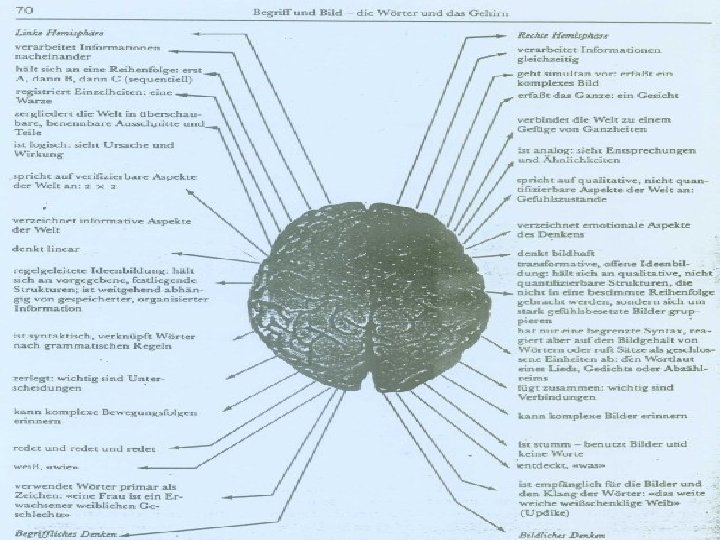 Hemisphärentheorie • Die Hemisphärentheorie, die von den amerikanischen Neurologen Roger Sperry und Robert Ornstein Anfang der siebziger Jahre entwickelt wurde, besagt, dass die beiden Gehirnhälften auf verschiedene Weise arbeiten und ihr Zusammenspiel das schöpferische Potential eröffnet. (Nina Kostka)