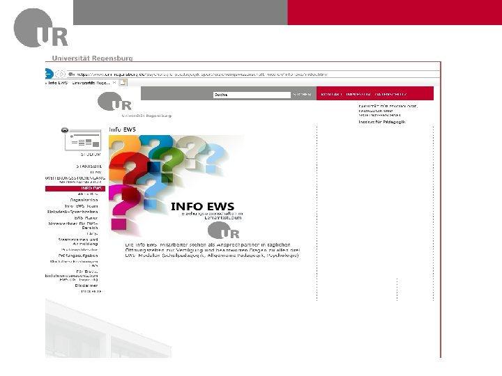 Informationen zum Erziehungswissenschaftlichen Studium: Google: Info-EWS Regensburg http: //www. uni-regensburg. de/psychologie-paedagogiksport/fakultaet/service/info-ews/index. html (Dort finden Sie auch diese Präsentation. )