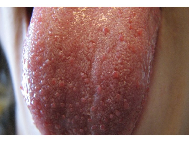 Hystologie der Zunge Haupt strukturen: quergestreifte Muskelfasern (verlaufen in drei Richtungen) zwischen der Fasern sind Adipozyten und kleine Drüsen (seröse oder muköse) Epithelium mucosae: mehrschichtiges unverhorntes Plattenepithel: unten und hinten glatt, dünn, in Pars papillaris linguae: Papillen: oben: Papillae filiformes, Papillae fungiformes seitlich: Papillae foliatae, vor dem Sulcus terminalis : papillae vallatae Lamina propria mucosae: straffes, faserreiches Bindegewebe unter Papillae vallatae alatt: seröse Drüsen (Ebner-Drüsen)