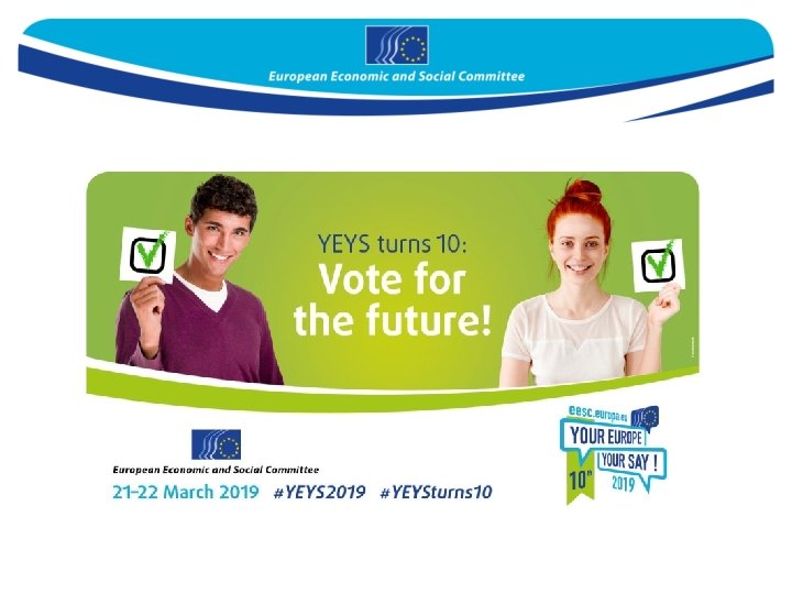 Kontaktinformācija • • • Sīkāka informācija: E-pasts: youreurope@eesc. europa. eu Tīmekļa vietne: www. eesc. europa. eu/YEYS 2019 Your Europe, Your Say @youreurope #YEYS 2019 #YEYSturns 10