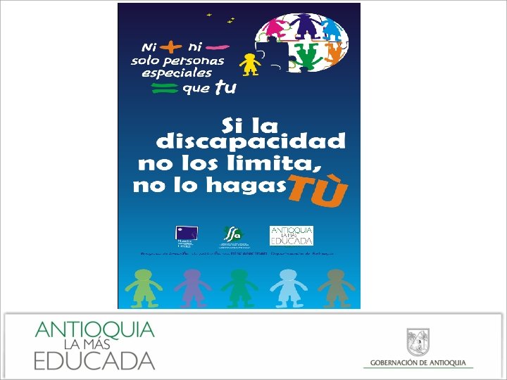 PLAN DE DESARROLLO. LINEA 4 : INCLUSION CON EQUIDAD. COMPONENTE: POBLACION INCLUIDA. PROGRAMA: ANTIOQUIA ES CAPAZ. PROYECTO: INCLUSION SOCIAL DE PERSO NAS CON DISCAPACIDAD CON ENFOQUE DE DERECHOS.