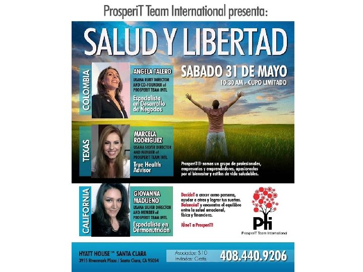 Titulo Nombre detalle Salud y Libertad Presentador Titulo Fecha, Hora 8 pm Lugar: xxxxxx Xxxxxx Costo: Invitados GRATIS, Dist $xxxxx www. Prosperi. T. mx
