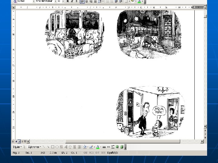 5. ¿Por qué las viñetas tienen forma ovalada o redondeada y no forma claramente rectangular o cuadrada? Probablemente, porque el autor quiere generar en el lector la sensación de una pesadilla o sueño difuso. . . Reflexión sobre la forma