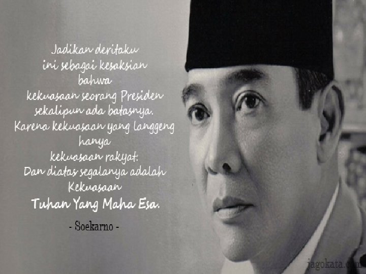 Setelah Pengakuan Kedaulatan (Pemerintah Belanda menyebutkan sebagai Penyerahan Kedaulatan), Presiden Soekarno kembali diangkat menjadi Presiden Republik Indonesia Serikat (RIS) dan Mohammad Hatta diangkat sebagai perdana menteri RIS. Karena tuntutan dari seluruh rakyat Indonesia yang ingin kembali ke negara kesatuan, maka pada tanggal 17 Agustus 1950, RIS kembali diubah menjadi Republik Indonesia dimana Ir Soekarno menjadi Presiden dan Mohammad Hatta menjadi wakilnya. Pemberontakan G 30 S/PKI melahirkan krisis politik hebat di Indonesia. Massa dari KAMI (Kesatuan Aksi Mahasiswa Indonesia) dan KAPI (Kesatuan Aksi Pelajar Indonesia) melakukan aksi demonstrasi dan menyampaikan Tri Tuntutan Rakyat (Tritura) yang salah satu isinya meminta agar PKI dibubarkan. Namun, Soekarno menolak untuk membubarkan PKI karena menilai bahwa tindakan tersebut bertentangan dengan pandangan Nasakom (Nasionalisme, Agama, Komunisme). Sikap Soekarno yang menolak membubarkan PKI kemudian melemahkan posisinya dalam politik. Lima bulan kemudian, dikeluarkanlah Surat Perintah Sebelas Maret (Supersemar) yang ditandatangani oleh Soekarno dimana isinya merupakan perintah kepada Letnan Jenderal Soeharto untuk mengambil tindakan yang perlu guna menjaga keamanan pemerintahan dan keselamatan pribadi presiden.