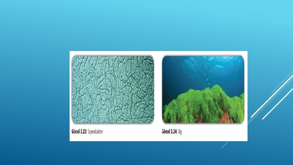 EKOSISTEMIN CANLI BILEŞENLERI (BIYOTIK FAKTÖRLER) Bir ekosistemin dengeli bir şekilde varlığını sürdürebilmesi için gerekli olan canlı bileşenler; üreticiler, tüketiciler ve ayrıştırıcılardır. Üreticiler (Ototroflar): İnorganik maddeleri, organik maddelere dönüştürerek kendi besinlerini üreten canlılara üreticiler (ototrof) denir. Siyanobakteriler, fitoplanktonlar, algler ve bitkiler; üretici canlı gruplarıdır (Görsel 3. 23 ve 3. 24).
