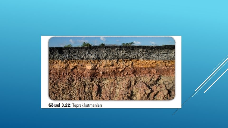 Toprağın yapısında organik ve inorganik maddeler bulunur. Topraktaki organik maddelerin kaynağı çürümüş bitki ve hayvan kalıntılarıdır; inorganik maddeler, su ve çeşitli minerallerdir. Birçok canlıya yaşama ortamı oluşturan toprak, katmanlı bir yapıya sahiptir (Görsel 3. 22). TOPRAK VE MINERALLER: