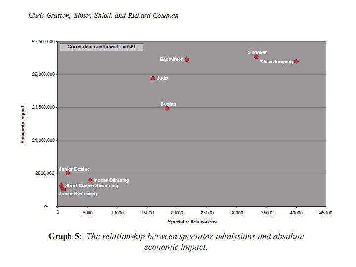 Takže proč? • Obecný argument „put a city on the map“…. výsledek růst turismu a realokace obchodních firem • Realita realokace firem – Firmy umísťují sídlo prokazatelně na základě přítomnosti kvalifikované pracovní síly (levnější prac. síly), stavu infrastruktur, daňové politiky, pobídek – Neexistuje důkaz, že by přítomnost sportovního týmu byla zohledněna jako faktor při rozhodování ‚s výjimkou několika typů firem) • Realita turismu: – Někteří do města, jiní z města… – Jak odlišit účelovou cestu za akcí od návštěvy akce z důvodu přítomnosti – Substituční efekt – Krátkodobý (private) profit z návštěvníků – Case: Analysis estimates that the local organising committee of the Sydney Olympics in 2000 experienced losses of A$45 million.