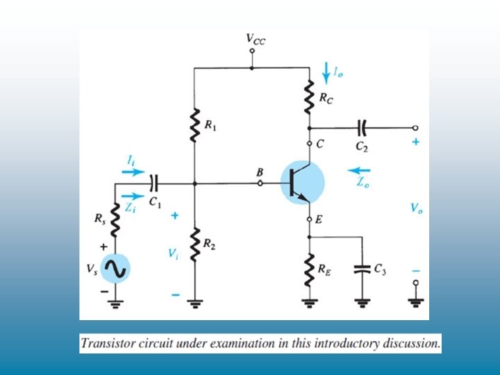 re Model for Common-Emitter Configuration (cntd. ) Common-Emitter re equivalent circuit. Voltage gain, Av : Current gain, Ai :