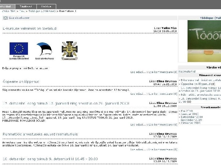 E-kursuse ülesehitus (jätk) § TEADMUSPAJAS § 2 osalejatele kohustuslikku arutelu, kus iga osaleja saab individuaalse tagasiside ning punktid § HALDUSES § 5 kodutööd, kus iga osaleja saab individuaalse tagasiside ning punktid § 5 enesekontrollitesti