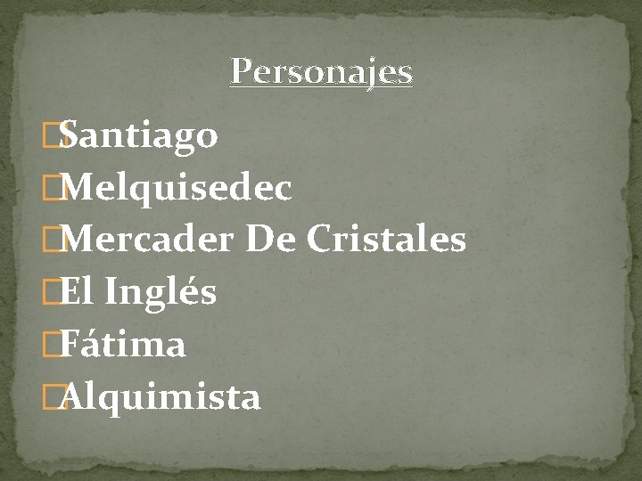 Personajes �Santiago �Melquisedec �Mercader De Cristales �El Inglés �Fátima �Alquimista