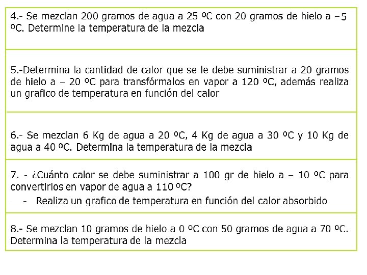 Observaciones: § Si se mezclan dos sustancias § El cuerpo de mayor masa experimenta menor cambio de temperatura § Si se mezclan las mismas masas de la misma sustancia la temperatura de equilibrio será el promedio de las temperaturas respectivas