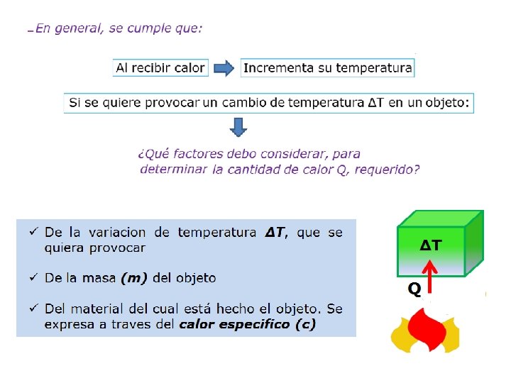 EL CALOR (Q) § Energía en transito, que se transmite de un cuerpo a otro en virtud de una diferencia de temperatura § El flujo normal y espontaneo del calor va desde el cuerpo de mayor temperatura al cuerpo de menor temperatura § El calor no se puede «guardar» . Por ejemplo, un termo para comida «no guarda el calor» , sino que mantiene la temperatura § El flujo de calor dura hasta que se consigue el equilibrio térmico