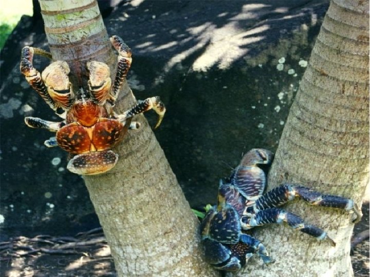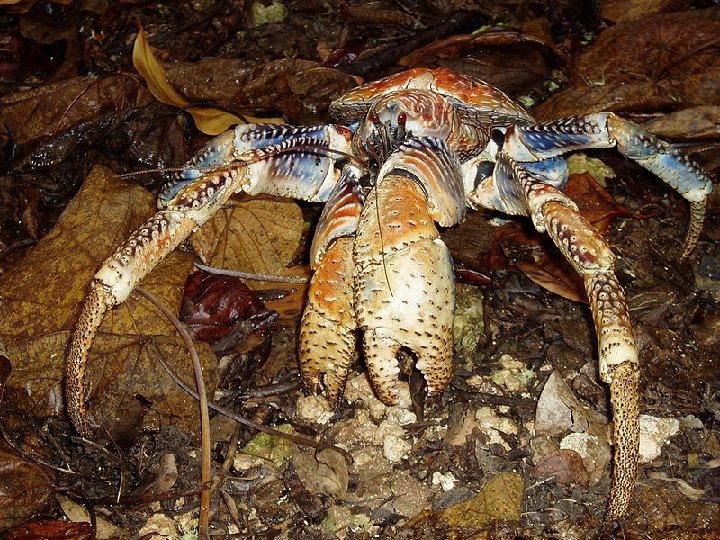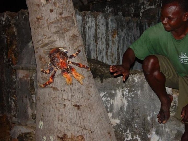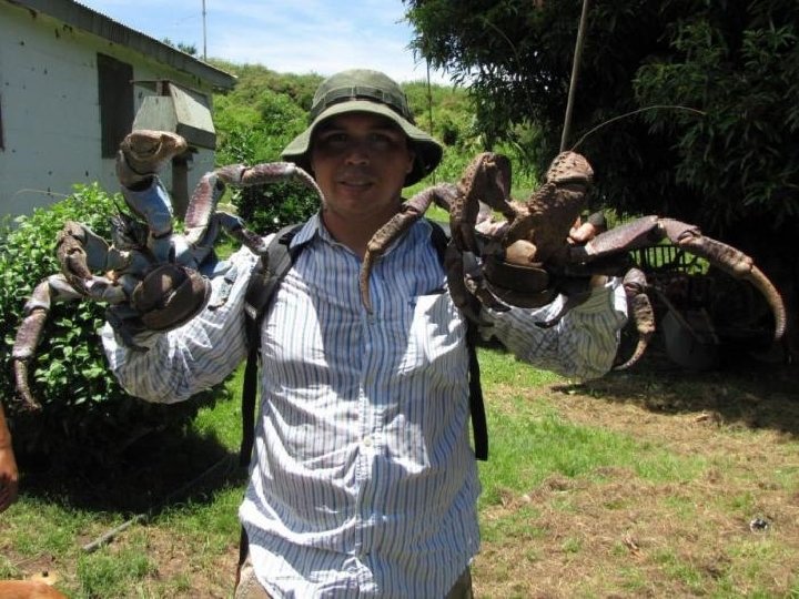 Es el cangrejo más pesado que puebla el planeta, un cangrejo que es capaz de abrir cocos con sus pinzas. También es conocido como el ladrón de palmeras, aunque no solo los cocos son el objetivo de estos cangrejos ermitaños, también objetos brillantes y curiosos. Pesan más de cuatro kilos, viven entre 30 y 60 años, pueden transportar objetos de hasta 30 kilos de peso, no sabe nadar pero si trepar por las palmeras. En resumen, un bicho imponente que te quita las ganas de quedarte a dormir bajo un cocotero,