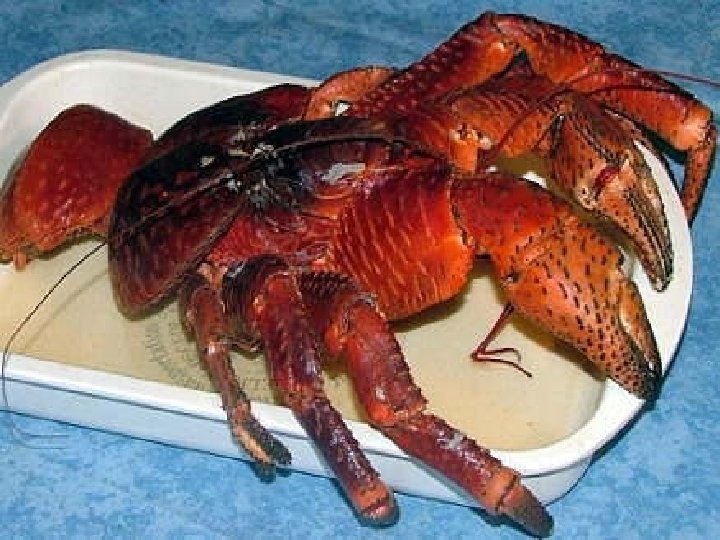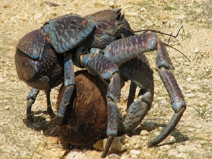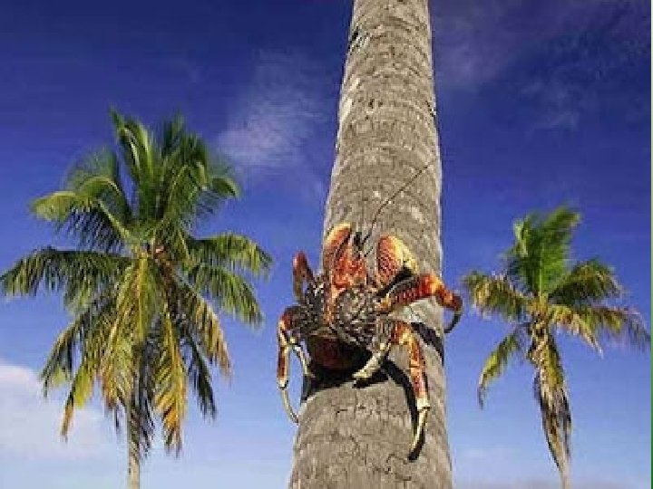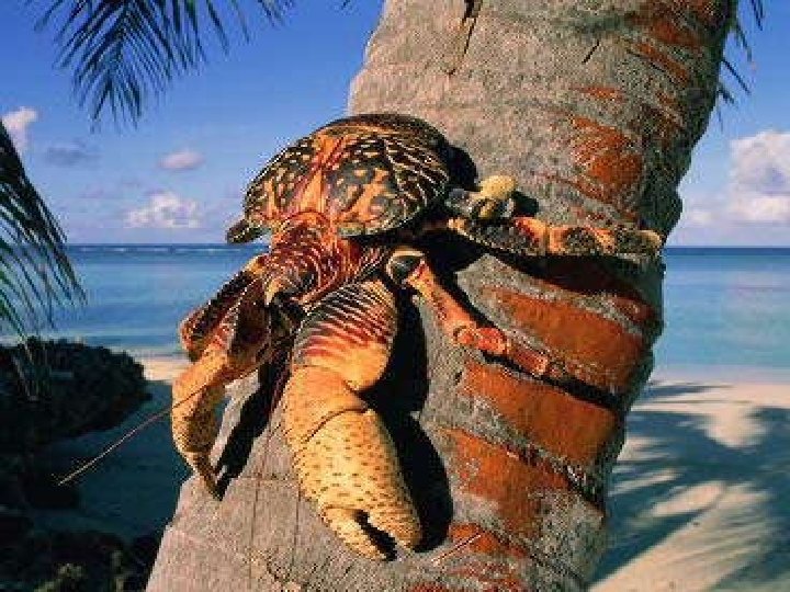 El cangrejo cocotero es un crustáceo de tierra, aunque también lo podríamos catalogar como arborícola, ya que como su nombre indica, trepa por las palmeras para arrancar y tirar los cocos a tierra firme. Como podrán ver, lo que lo caracteriza es su tamaño!. Este gigantesco cangrejo se alimenta especialmente de la pulpa del coco