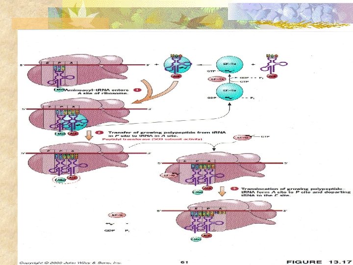 Traducción: (elongación) n n n La translocación se lleva a cabo cuando el primer t. RNA (met) se mueve del lugar P al lugar E (“exit”). El t. RNA que estaba en el lugar A se mueve al P El m. RNA mueve el siguiente codón para ser reconocido por el t. RNA en el lugar A.