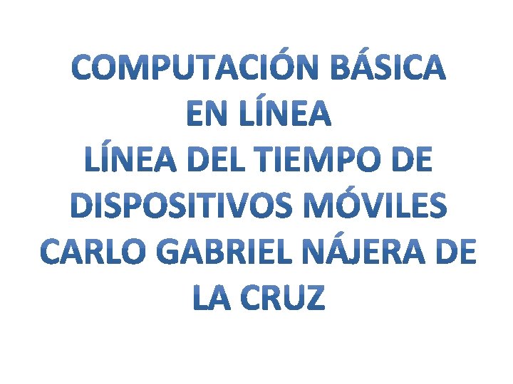 Kyocera QCP 6035 Fue un completo hit en el mercado entrando en furor a inicios del 2001, el Kyocera QCP 6035 tenía 8 MB de memoria y costaba al rededor de 450 dólares, adicional a este lanzamiento en el año 2. 000 se empezaban a ver los primeros prototipos lanzados por Motorola con pantalla táctil. El Treo 180 de la empresa Handspring, fabricante del Treo, hizo olas con su modelo 180. Más PDA que teléfono, el Treo 180 se produjo en dos versiones: una con un teclado QWERTY para escribir (ver foto), y otra, que contaba con el sistema de entrada de texto “Graffiti”, el Treo 180 g. Al igual que el Kyocera QCP 6035, contaba con una pantalla monocromática, pero con la ventaja de sus 16 Mb de memoria de almacenamiento. Blackberry Pearl MOTOROLA RAZR V 3 De 13, 9 mm de grosor, así como su teclado plano hecho con níquel plateado con números y símbolos químicamente grabados dentro una capa electroluminiscente. Aproximadamente 5, 5 MB. GSM. MP# y polifonicos, 99 g. HTC G 1 El primer dispositivo móvil de comunicación También mejora la en incorporar el sistema funcionalidad multimedia, operativo móvil de Google agregando una salida stereo de denominado Android. auriculares de 3. 5 mm y capacidad para grabación de video por la cámara. 91 g. Teclado QWERTY. Visor de documentos (Word, Excel, Powerpoint, PDF) Acceso completo a funciones de conectividad y navegabilidad en internet, cámara de 3, 2 Megapixeles con autofoco, acceso a 3 G de alta velocidad y Wi-Fi, teclado deslizable, acceso directo a todas las aplicaciones Google, tales como Gmail y Google Maps. Tarjeta de memoria de 1 Gigabyte. Línea del tiempo dispositivos móviles 2000 2001 2002 2003 2004 2005 2006 2007 2008 2009 Nokia 8260 El teléfono Nokia 8260 funciona en redes inalámbricas AMPS, TDMA a 800/1900 MHz. El peso del teléfono es 96 gramos. Tiene 101 mm de altura, 46 mm de ancho y 18 mm de profundidad. El aparato posee una antena externa. Nokia 8260 le permite hablar hasta 3. 3 horas cuando en espera puede durar hasta 8 días. El aparato posee una pantalla LCD bastante grande para su tiempo, que permite mostrar 5 lineas de información en un solo color. El celular puede reproducir 40 Monophonic ringtones. Sidekick es un rectángulo gris ligeramente redondeada como para caber en la palma de una mano de tamaño medio. En el frente del dispositivo es una pantalla LCD que gira 180 grados para revelar un teclado QWERTY completo debajo. Sony Ericsson W 810 i Sus funciones principales incluyen reproductor de música con Sony Mega Bass, ranura de expansión de memoria de hasta 2 GB, pantalla TFT de 262 k colores, cámara de 2 megapixels con autofocus, Bluetooth e infrarrojo. Iphone. Con un diseño El Motorola Milestone innovador, una sola tecla inicialmente viene con la y pantalla táctil, cámara versión 2. 0 de Android. RAM: 256 MB, ROM: 512 MB. 5 fotográfica de 2 megapixeles, la habilidad megapixeles con autofoco. de sincronizar i. Tunes con Touchpad multitáctil. Teclado QWERTY. el teléfono. También ofrece servicios de Internet como leer correo electrónico, cargar páginas web y conectividad por Wi-Fi.