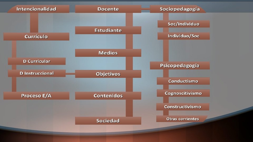 Educación postmoderna • Objetivos: Intencionalidades alineadas. • • • Docencia: Teoría de la Variabilidad/Teoría de la Subsumsión. Investigación: Institucional vs Individual. Extensión: Consciente, planeada. • • • Contenidos: Significativos, actuales. Estudiante: Colega. Medios: Suficiencia, Competencia, Medio.