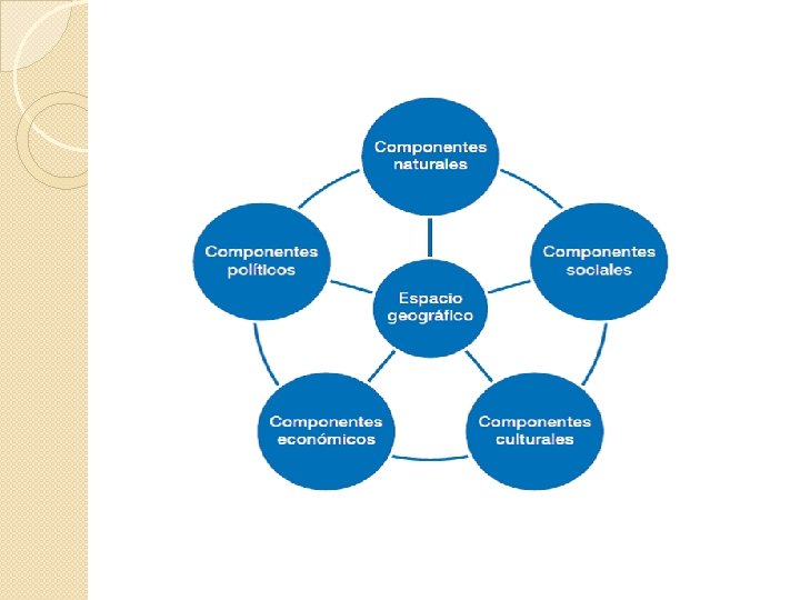 "El espacio geográfico se concibe como el espacio socialmente construido, percibido, vivido y continuamente transformado por las relaciones e interacciones de componentes, a lo largo del tiempo. " � Debes pensar en una visión global del espacio mediante el reconocimiento de las relaciones entre sus componentes naturales (relieve, agua, clima, vegetación y fauna), sociales (composición, distribución y movilidad de la población), culturales (formas de vida, manifestaciones culturales, tradiciones y patrimonio), económicos(recursos naturales, espacios económicos, infraestructura, servicios y desigualdad socioeconómica) y políticos(territorios, fronteras, políticas gubernamentales y acuerdos nacionales e internacionales que se definen a partir de los problemas contemporáneos de la sociedad). Mira el siguiente