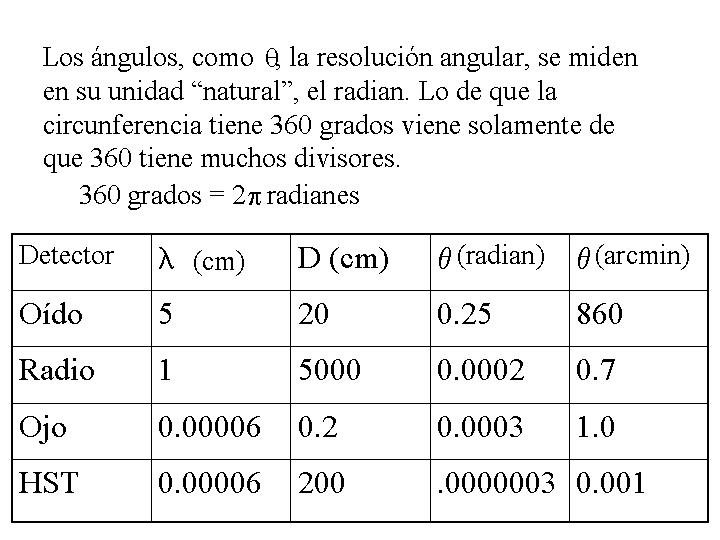 Resolución Angular ¿Qué tan precisamente podemos determinar la posición de una estrella o bien la dirección de la que proviene un sonido?
