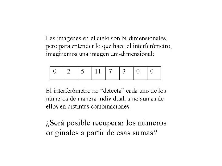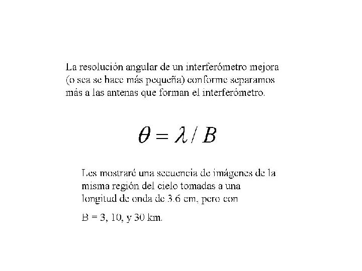 Ventajas de un interferómetro Mayor resolución angular Producen imágenes de millones de pixeles Sustituyen al acero con la electrónica Obtienen posiciones de enorme precisión