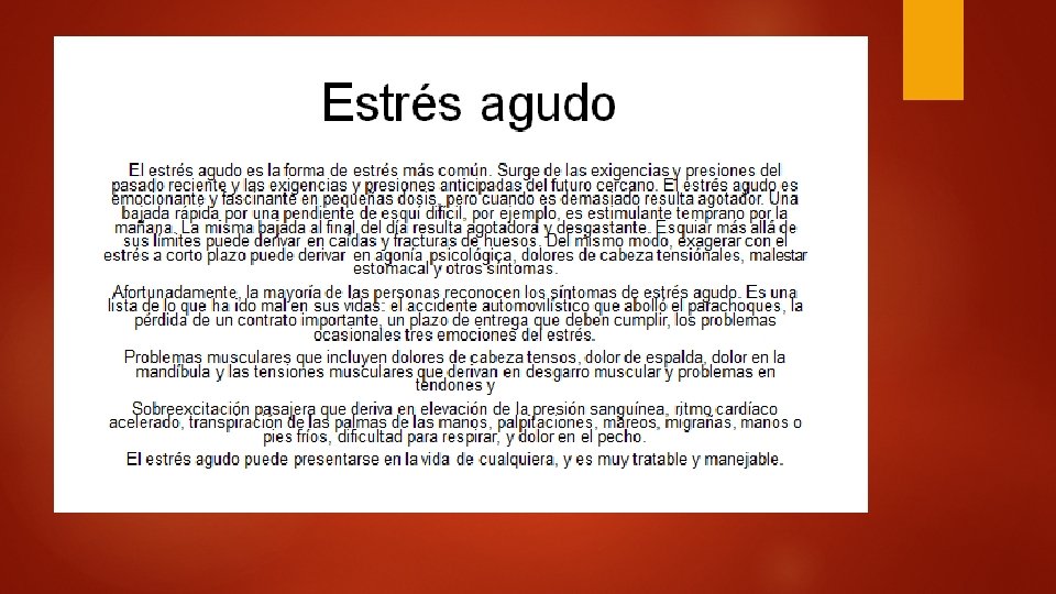 EL ESTRÉS El estrés es una reacción fisiológica del organismo en el que entran en juego diversos mecanismos de defensa para afrontar una situación que se percibe como amenazante. el sistema parasimpático tiene tendencia a hacer regresar al cuerpo a condiciones fisiológicas más normales. la manera del cuerpo a responder al estrés es mediante el sistema nervioso simpático de activación que da lugar a la respuesta de lucha o huida.