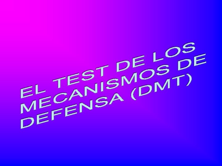 q. En esencia, el fundamento del llamado test de mecanismos de defensa (DMT) supone que la capacitación distorsionada de cualquier parte de la escena, sobre todo de la figura del (protagonista), se debe a la presencia de un estímulo ansiógeno no advertido, que indicaría propensión o vulnerabilidad a los estímulos amenazantes. En la práctica esto vendría a significar que las personas (susceptibles) a estímulos ansiógenos inconscientes manifiestan una propensión mayor que las personas normales a verse afectados por esta clase de estímulos.