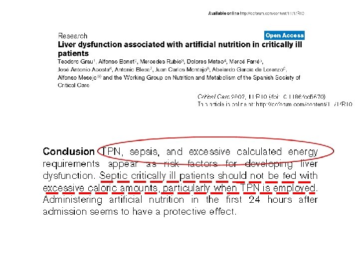 § Los cambios o alteraciones en la batería hepática son un hallazgo común de estos pacientes por lo que a priori debemos hablar mas de alteraciones de los test de función hepática que de lesión hepática propiamente dicha § Las alteraciones morfológicas que solemos encontrar pertenecen al grupo de la degeneración grasa y son per se reversibles dependiendo su significado clínico tanto de la causa como de la severidad de la acumulación § La hipoperfusión del eje hepatoesplácnico condiciona un mayor incremento en los procesos sépticos y en la aparición de fallo orgánico