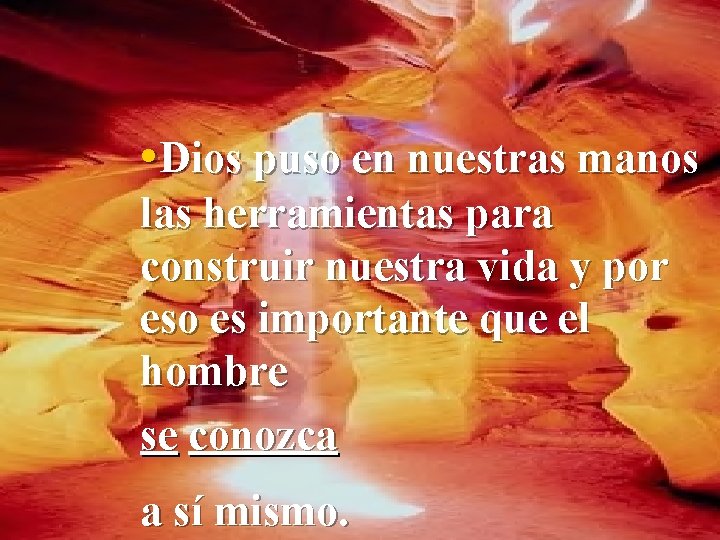 • Dios puso en nuestras manos las herramientas para construir nuestra vida y por eso es importante que el hombre se conozca a sí mismo.